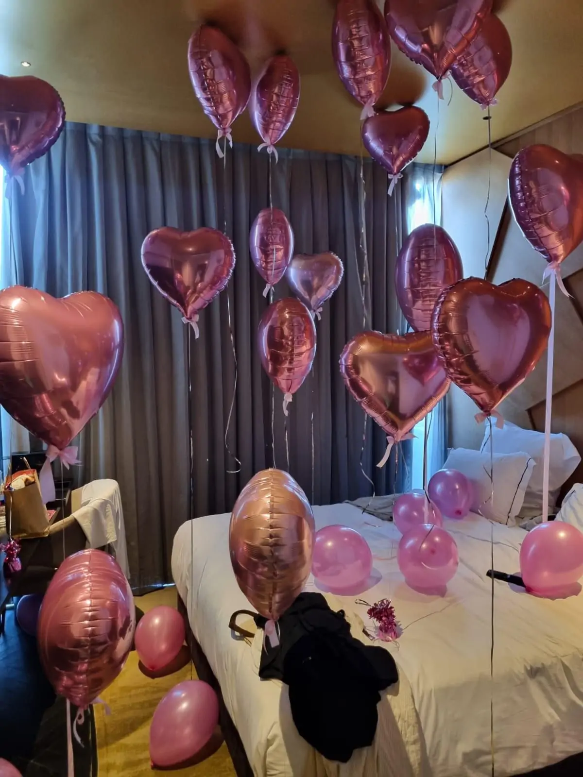 חדר בלוני לב רוז־גולד