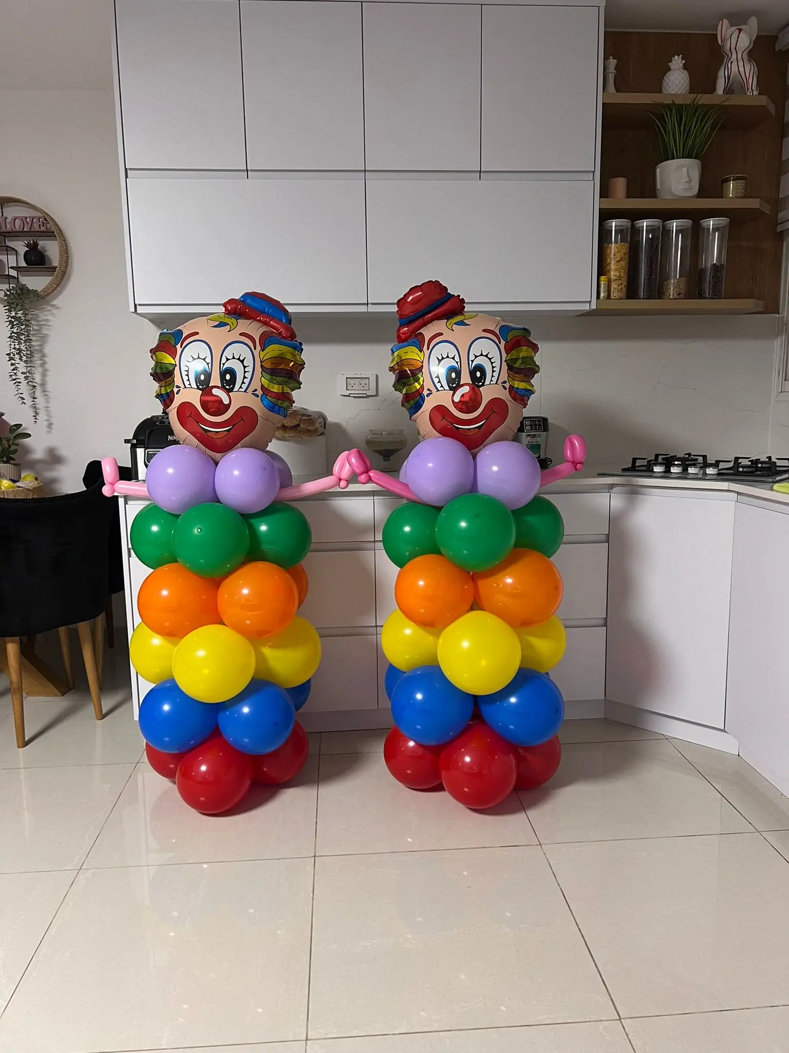 זוג ליצנים מבלונים לפורים – עיצוב צבעוני לבית ולאירועים