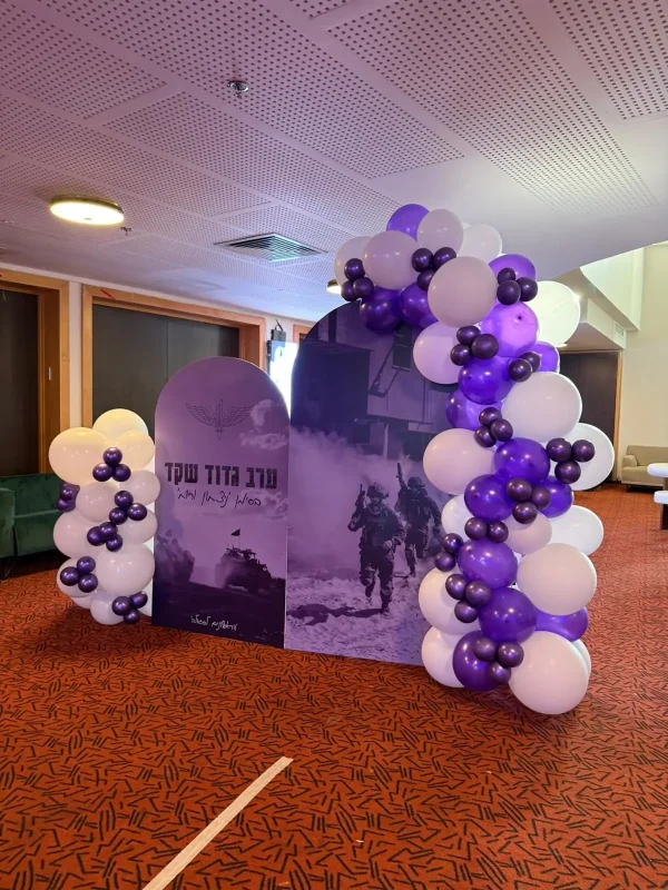 עיצוב בלונים לאירוע יחידה צבאית – סגול ולבן