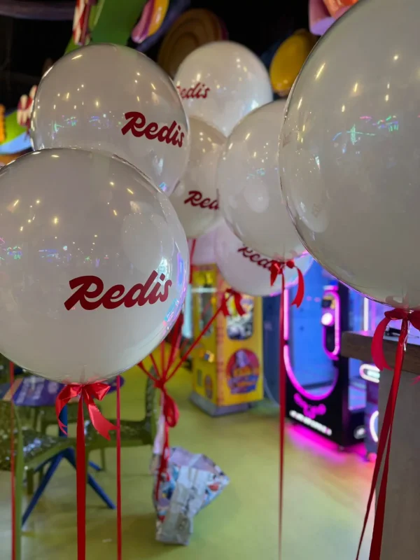 סט בלוני בועה לבנים עם מיתוג Redis בהדפס אדום נקי, כולל קשירה בסרטים אדומים ליצירת נוכחות ברורה ובולטת במרחב. הבלונים משתלבים בצורה מושלמת בעיצוב חלל מסחרי, אירועי קד״מ, השקה או פעילות חווייתית, ומדגישים את המותג בצורה אלגנטית, צעירה וזכירה. פתרון מושלם למשיכת תשומת לב ולחיזוק הנראות העסקית במקום.