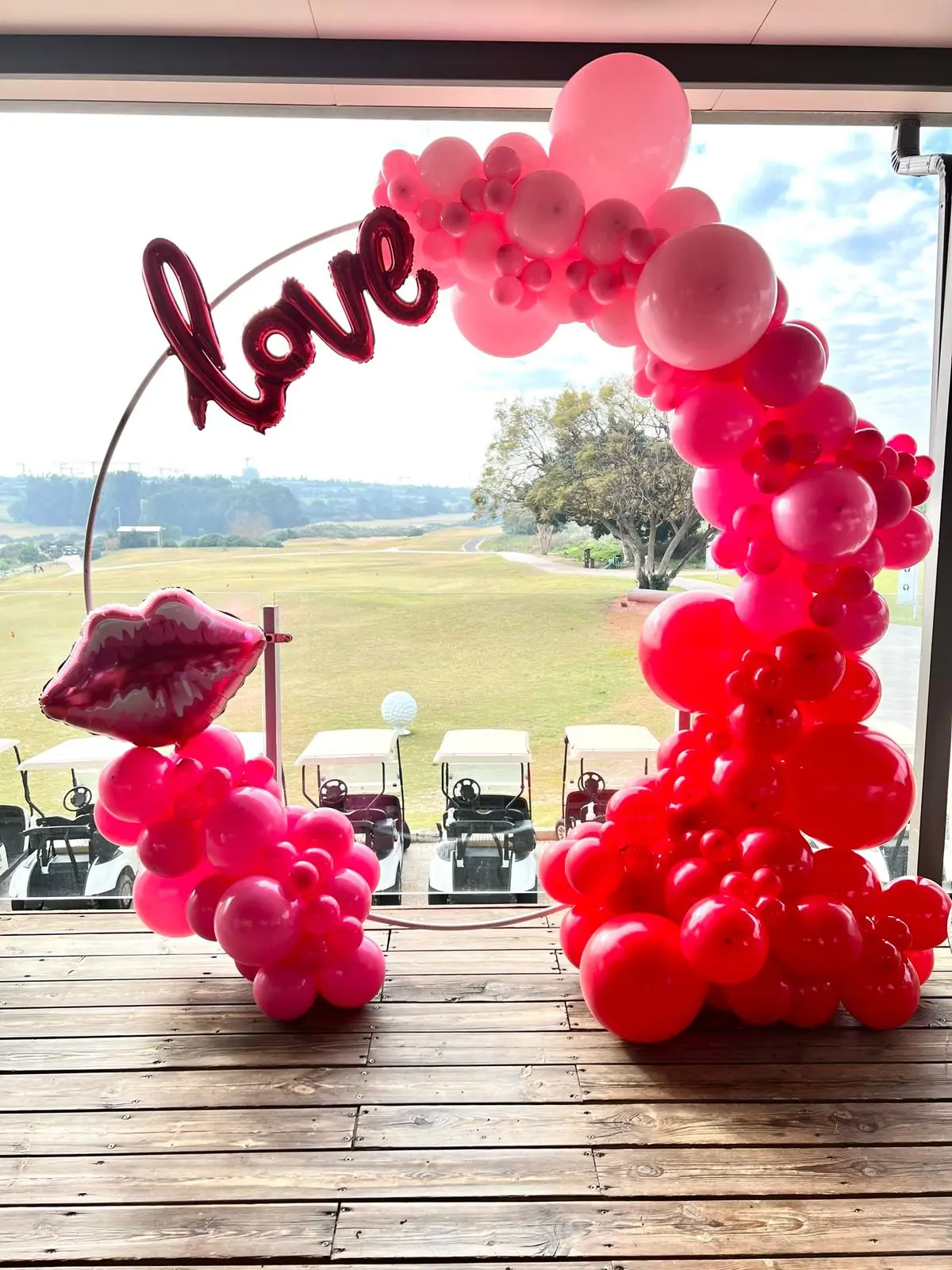 קשת בלונים רומנטית ומרשימה בגווני ורוד ואדום, בעיצוב עשיר ודינמי הכולל בלונים בגדלים שונים, כיתוב LOVE מרחף ובלון שפתיים להשלמת האווירה. העיצוב מושלם לצילומים רומנטיים, ולנטיין דיי, הצעת נישואין, יום נישואין או אירוע אהבה יוקרתי במתחם, מסעדה או לוקיישן פתוח. שילוב מדויק של צבעים ונפח שיוצר אפקט וואו מיידי.