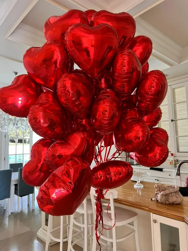 זר בלונים יוקרתי ומרשים המורכב ממספר רב של בלוני לב אדומים מבריקים, הקשורים יחד ליצירת מראה עשיר, רומנטי ומלא נוכחות. הזר מתאים במיוחד ליום האהבה, ולנטיין דיי, הצעת נישואין, יום נישואין או כהפתעה זוגית מרגשת בבית. עיצוב שממלא את החלל באהבה ויוצר אפקט וואו בלתי נשכח.